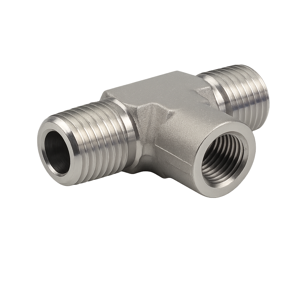 Тройник с внешними резьбами и внутренней резьбой снизу U-LOK — универсальный фитинг для соединения трёх линий трубопровода. Две прямые линии выполняются с наружной резьбой, а боковой отвод — с внутренней, что облегчает подключение различных типов оборудования и арматуры. Конструкция обеспечивает компактность и удобный монтаж в системах с ограниченным пространством.